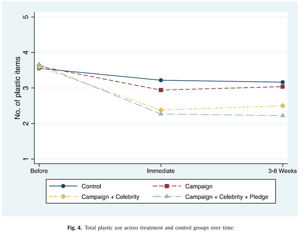 This study uses a large field experiment linked to actual behavior to evaluate the effects of an information campaign with and without celebrity endorsement on the use of single-use plastics. We find that demand for single use plastics, particularly for plastic straws and spoons, is very responsive to information when — and only when — it is coupled with our celebrity endorsement. The effect of celebrity endorsement is sizeable. Subjects in the treatment with celebrity endorsement use around 29% fewer plastic straws and spoons in the shop at the end of the experiment compared with subjects in the control group. The impact of our one-shot intervention goes beyond the immediate effect measured right after the intervention. It remains significant and similar in size around one month after the intervention. Exploratory analysis suggests that an isolated information campaign affects attitudes, but not behavior, and that it is the celebrity endorsement itself that affects behavior.